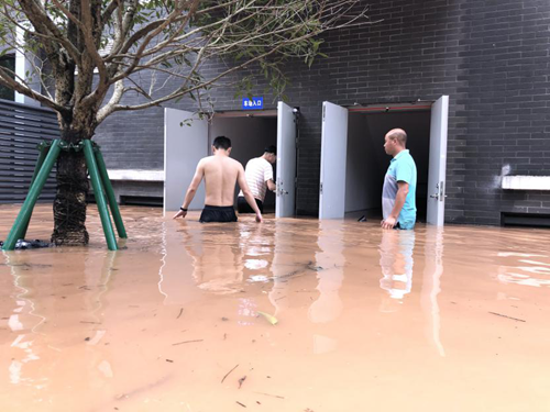 8月24日凌晨1點(diǎn),樂山再次突發(fā)強(qiáng)降雨,新廣場(chǎng)公廁由于地勢(shì)較低,進(jìn)水嚴(yán)重?!拔覀兞⒓窗才泡^近的新廣場(chǎng)停車場(chǎng)項(xiàng)目部趕去支援該公廁,連夜配送了20個(gè)防洪沙袋,并帶領(lǐng)工作人員在新廣場(chǎng)公廁入口構(gòu)筑防洪堤,確保把強(qiáng)降雨給項(xiàng)目帶來的損失降到最低?!表?xiàng)目負(fù)責(zé)人說。
