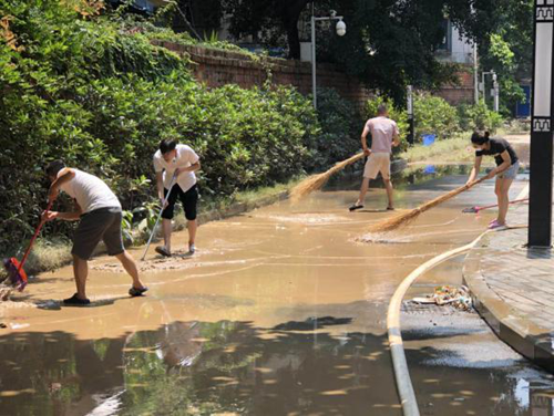 擼起袖子加油干,大家按照職責(zé)分工,踴躍投入到淤泥清除、隱患排查等抗洪救災(zāi)任務(wù)中。經(jīng)過3天的連續(xù)作業(yè)艱苦奮斗,各受災(zāi)項(xiàng)目的積淤泥沙已基本清理完成。演武街停車場(chǎng)地下室因積水相對(duì)嚴(yán)重,由于項(xiàng)目部使用的發(fā)電機(jī)和抽水泵較小,無法立即抽干積水,在廣元救援隊(duì)的支援下,于8月22日完成了演武街停車場(chǎng)地下室的搶險(xiǎn)工作。