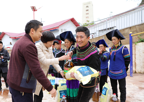 10月18日,在甘子村慰問現(xiàn)場,吳睿代表一分公司黨委、工會(huì)向秦永紅及甘子村同胞致以誠摯的慰問和美好的新春祝福,并將慰問信交予村委會(huì)書記手中,向貧困戶代表分發(fā)了大米、食用油等慰問品。吳睿在交流中表示,2020年是脫貧攻堅(jiān)決戰(zhàn)決勝之年,彝族同胞們在脫貧之路上展現(xiàn)出了火熱的激情、堅(jiān)韌頑強(qiáng)的意志,以及為美好生活而奮斗的拼搏精神。作為央企,中國五冶將繼續(xù)踐行社會(huì)責(zé)任,扛起央企擔(dān)當(dāng),與貧困村攜手奮進(jìn),迎接脫貧摘帽的那一天!愿甘子村所有百姓早日實(shí)現(xiàn)“兩不愁三保障”,愿彝族燦爛的民族文化綻放新時(shí)代光彩!