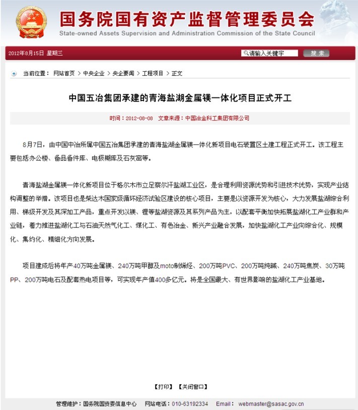 國資委報(bào)道:中國五冶集團(tuán)承建的青海鹽湖金屬鎂一體化項(xiàng)目正式開工