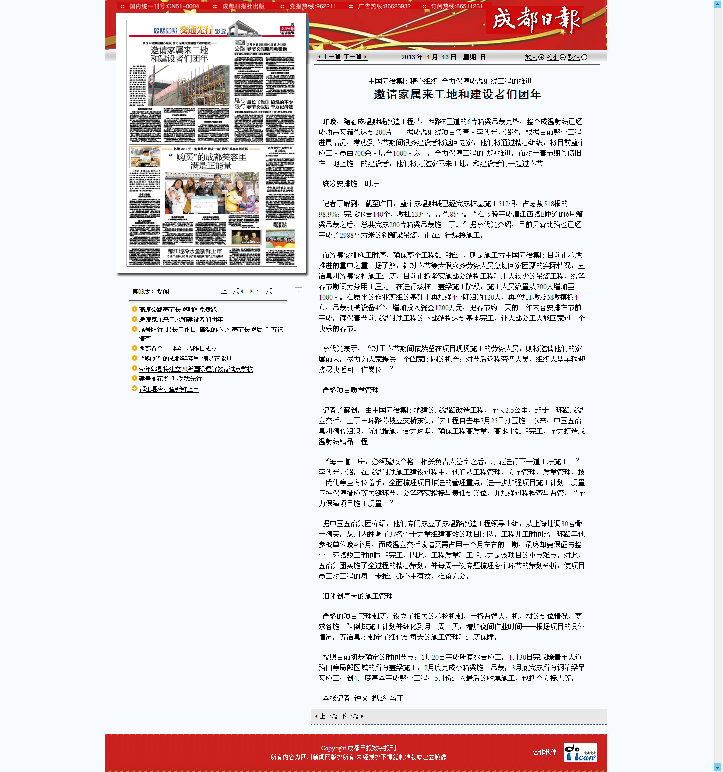 上一篇:中國(guó)工程建設(shè)網(wǎng)報(bào)道:中國(guó)五冶集團(tuán)成溫路改造工程雙層高架開(kāi)始吊裝