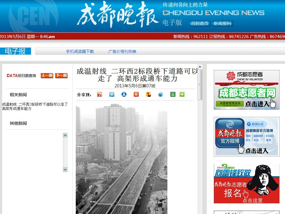 昨日,成都晚報(bào)記者從中國(guó)五冶成溫路改造項(xiàng)目部獲悉,成溫射線的交安設(shè)施基本安裝到位,已具備通車條件;同時(shí),來自二環(huán)路改造西2標(biāo)段施工單位成都建工集團(tuán)的消息,二環(huán)路西2標(biāo)段達(dá)到通車條件,今天起,這段長(zhǎng)約6公里的新二環(huán)就將全面呈現(xiàn)在市民面前。據(jù)記者昨日體驗(yàn),這兩段路的底層道路均已全面放開交通。