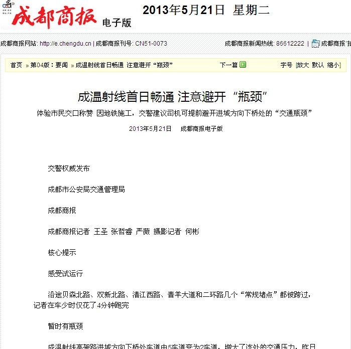 上一篇:成都日?qǐng)?bào)報(bào)道:提前10天 成溫射線通車?yán)?成為“兩快兩射”工程第一條通車的道...