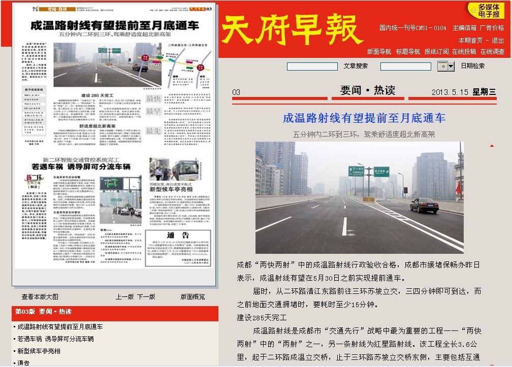 下一篇:四川在線報(bào)道:成溫射線達(dá)到通車條件 城西出城三四分鐘完成