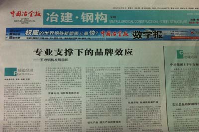 8月9日,《中國冶金報》05版以“專業(yè)支撐下的品牌效應”為題,從轉變思路,迎來破繭重生;苦練內(nèi)功,催開轉發(fā)展之花;技術先行,張專業(yè)化之翼;優(yōu)化產(chǎn)品,提升產(chǎn)品經(jīng)營層次;拓展市場,馳騁海內(nèi)贏口碑等五個方面,刊文報道了中國五冶集團鋼結構產(chǎn)業(yè)發(fā)展概況,對中國五冶鋼構專業(yè)化支撐品牌發(fā)展的情況進行了詳細梳理。