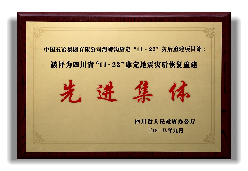 2018年9月,中國五冶集團(tuán)兩項(xiàng)目部榮獲四川省“11.22”康定地震災(zāi)后恢復(fù)重建先進(jìn)集體稱號。