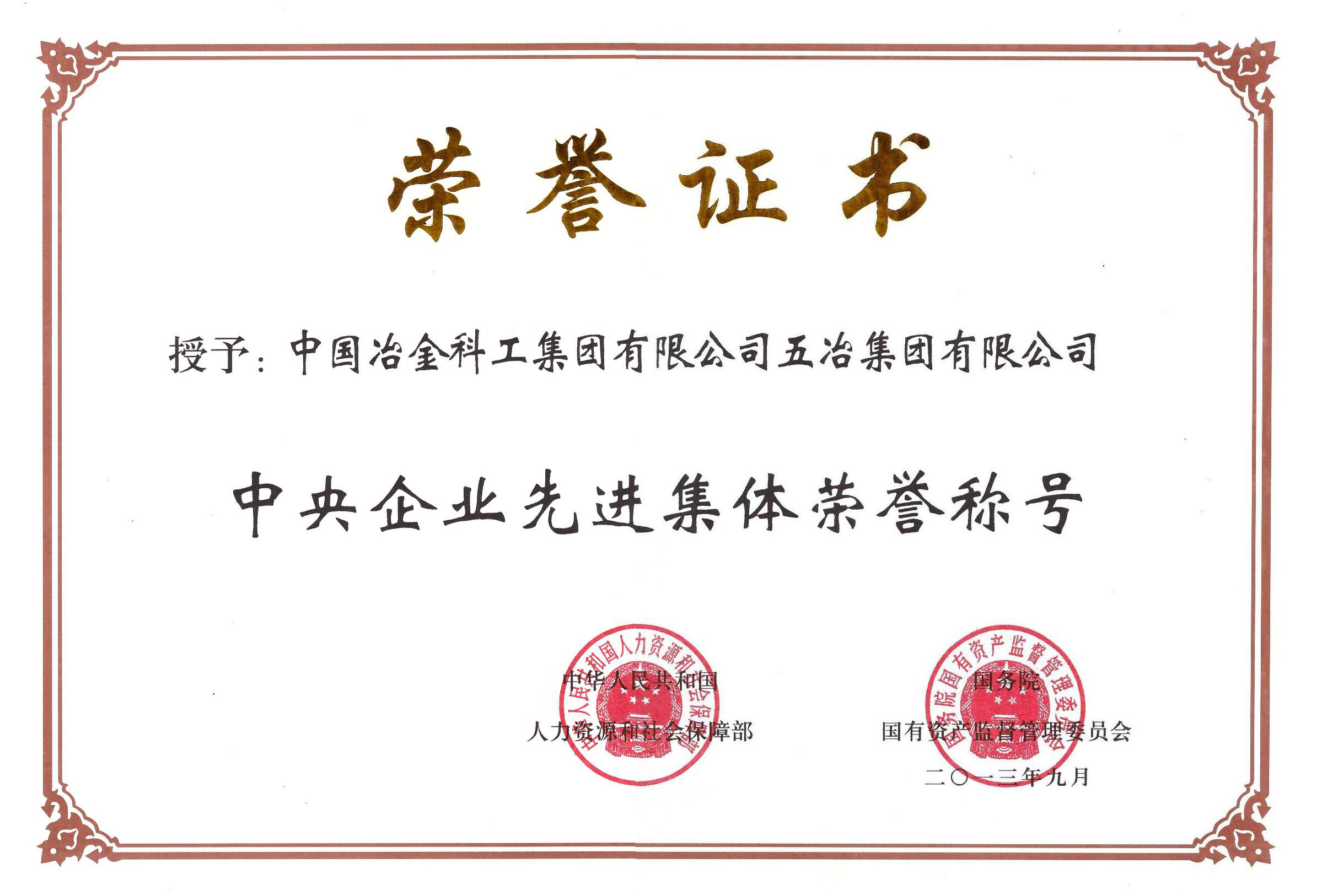 ????2013年10月15日,國(guó)務(wù)院國(guó)資委授予中國(guó)五冶集團(tuán)有限公司“中央企業(yè)先進(jìn)集體”稱號(hào)。
