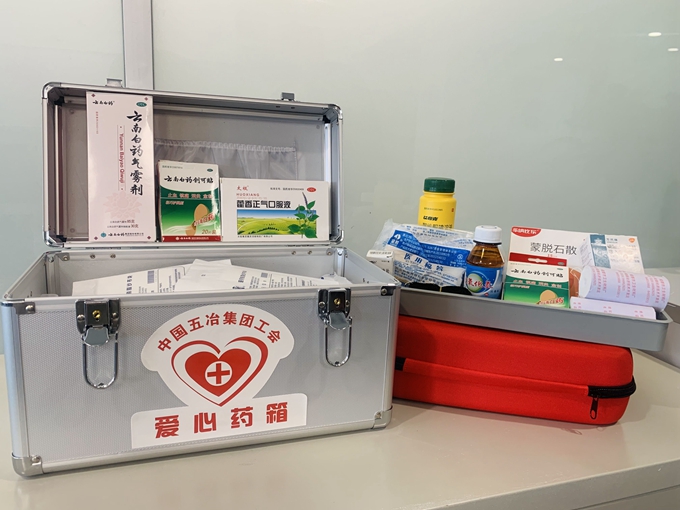 中國五冶愛心藥箱中配備了常用的應急藥品,其中包括速效救心丸和防暑、腹瀉等方面的內(nèi)服藥品,以及云南白藥、創(chuàng)口貼、碘伏等外用藥品等,以便為突發(fā)情況的職工提供基礎急救保障。