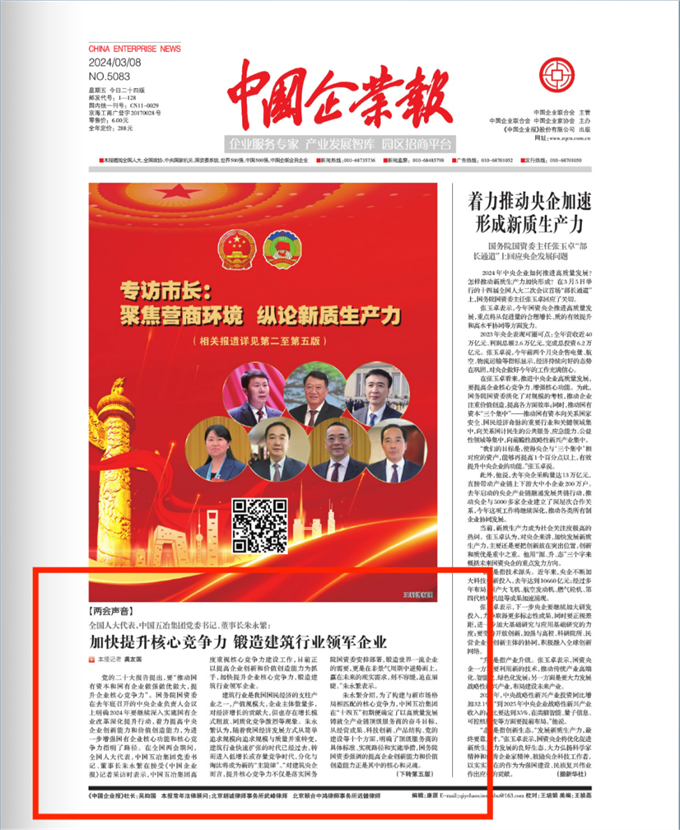《中國(guó)企業(yè)報(bào)》頭版:加快提升核心競(jìng)爭(zhēng)力 鍛造建筑行業(yè)領(lǐng)軍企業(yè)