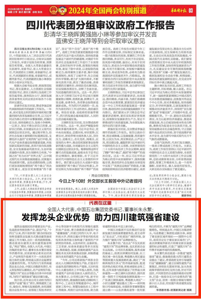 《華西都市報(bào)》:發(fā)揮龍頭企業(yè)優(yōu)勢(shì) 助力四川建筑強(qiáng)省建設(shè)