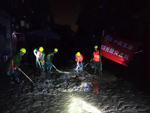 中電熊貓項(xiàng)目搶險(xiǎn)隊(duì)在黃龍溪清理街道淤泥