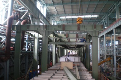上海技改公司承擔的三期寶鋼硅鋼項目中是工作量最大的一條機組,任務(wù)重,工期緊。目前,機組正處于設(shè)備安裝高峰階段,項目部科學統(tǒng)籌,合理安排工序,克服高溫影響,出口段設(shè)備基本安裝完畢;烘烤爐已進入耐材砌筑階段;前后清洗段槽體設(shè)備就位完畢,為清洗段配管工作創(chuàng)造好了條件;現(xiàn)在正在努力推進退火爐爐子鋼結(jié)構(gòu)平臺的安裝,為8月上旬進行退火爐安裝創(chuàng)造條件。