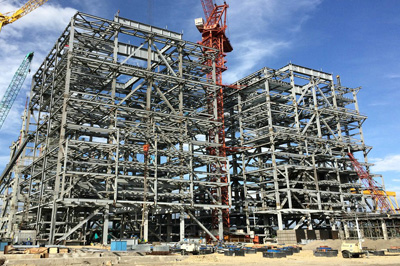 鍋爐框架鋼結構主體吊裝現(xiàn)場